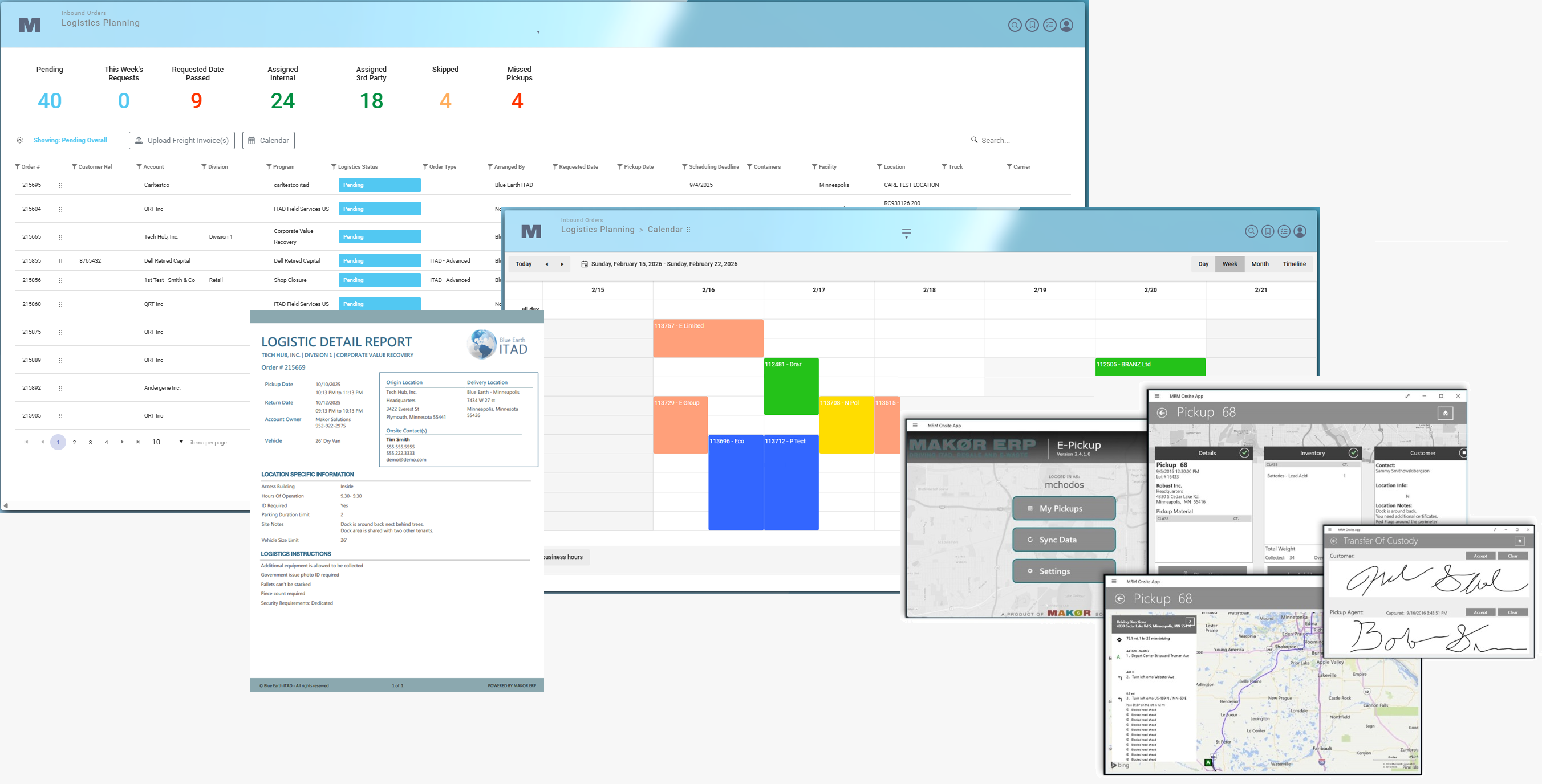 • Makor ERP™ E-Pickup App (w/Bar Codes, Signatures & Transfer of Custody)